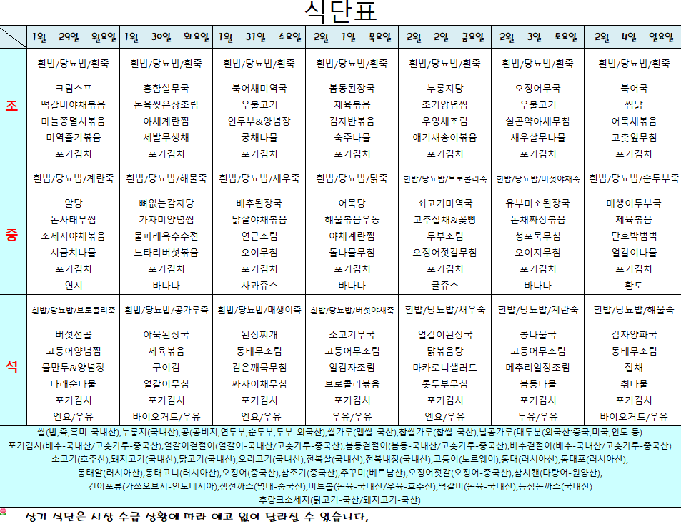 2¿ù ù°ÁÖ ½Ä´ÜÇ¥ÀÔ´Ï´Ù.