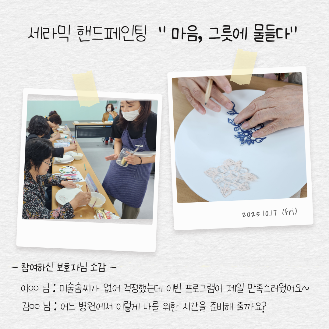 | 830 | 10/17 º¸È£ÀÚ Èú¸µÇÁ·Î±×·¥ ÁøÇà | °ü¸®ÀÚ | 2025-10-21 | 430 |